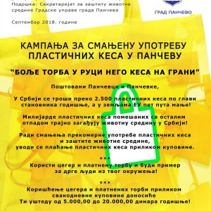 Udruženje građana ECO13 u okviru projekata „Kampanja za smanjenu upotrebu plastičnih kesa u Pančevu“ sprovelo je u septembru mini istraživanje o stavovima građana o upotrebi plastičnih kesa. Za potrebe evaluacije projekta konstruisan je…
